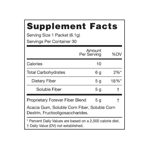 Because fiber promotes optimal health and digestive function, experts recommend taking in around 30 grams of this power nutrient a day. Most people only consume half that amount. Forever Fiber® makes it incredibly easy to hit the ideal daily recommendation, anywhere and anytime.
